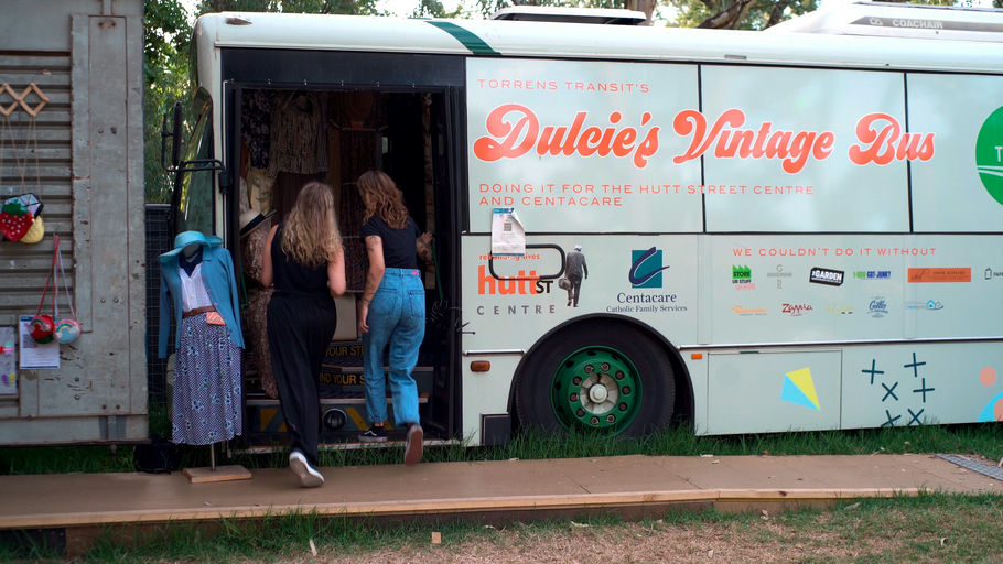 Dulcies bus is a mobile second-hand vintage clothing store delivering vintage shopping to events and locations across South Australia. All proceeds go toward supporting people experiencing homelessness.